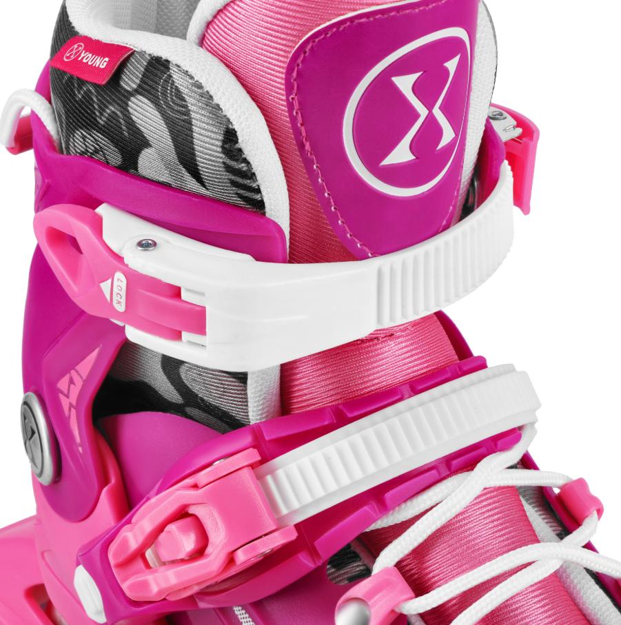 Bliver godt rullende på denne smukke rulleskøjte. Gummihjul forsynet med ABEC-7 lejer sikrer god fremdrift og stødabsorbering. Gode mulighed for at fastspænde på barnets fod. Justerbar i størrelsen i disse intervaller (31 - 34) (35 - 38) .