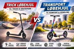 Valget mellem trick og transport løbehjul afhænger af formålet. Tricks kræver robust konstruktion, mens transport kræver komfort og stabilitet.