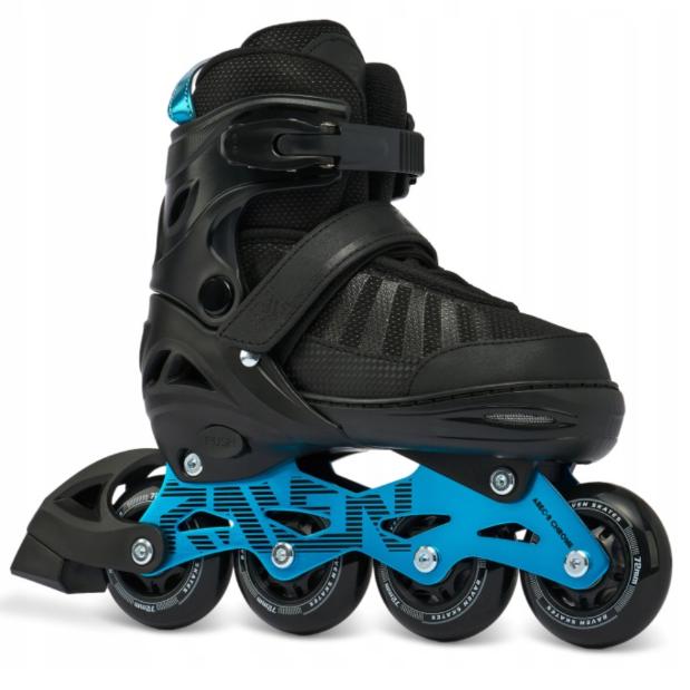Flot og stilren inline rulleskøjter med BLÅ CHROME farvet klinge. Kuglelejer med ABEC-9 som giver god fart. Kan spændt godt fast om fod og underben med 3 fæstningspunkter. Forsynet med 76 mm hjul (GUMMI) som giver stabil kørsel og godt greb i underlaget uden af flosse.